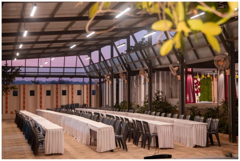The Wide Dining Area boasts a seamless blend of elegance and functionality. Its ample space allows for flexible seating arrangements, ensuring that all guests can dine in comfort. The exquisite decor and ambient lighting add a touch of sophistication, setting the perfect ambiance for your wedding feast. Whether you desire a lavish buffet or a formal sit-down dinner, the skilled culinary team will tantalize your taste buds with a curated menu of delectable dishes, leaving you and your guests fully satisfied. The Wide Dining Area promises an unforgettable dining experience that will add a delightful and memorable element to your wedding celebration in Bangalore.